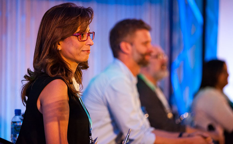 A panel responds to the keynote speech delivered by Ansaf Salleb-Aouissi, lecturer in computer science at Columbia University, on the history of AI. She said we can use lessons learned during the early years of AI to promote more inclusive AI today.