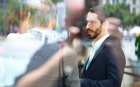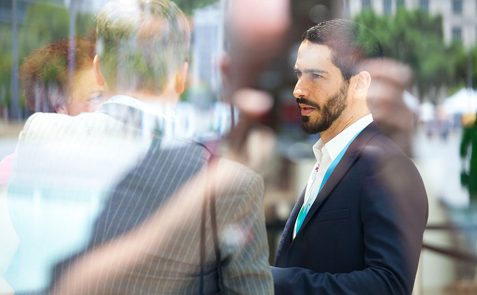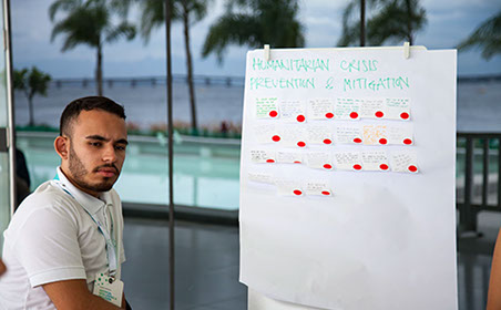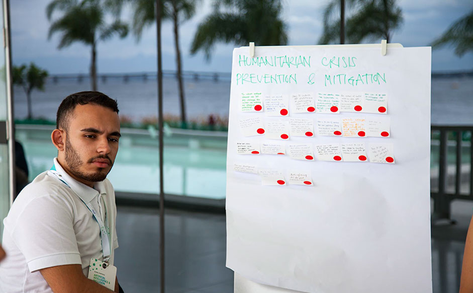 Daniel Calarco de Oliveira, president of International Youth Watch, listens during the breakout session on Humanitarian Crisis Prevention & Mitigation. The session focused on how AI technologies might help prevent humanitarian crises and speed response times.
