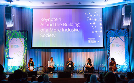 Within the site you will find foundational materials on the themes of AI and inclusion including descriptions of overarching themes, key research questions, the initial framing of a research roadmap, as well as some of the most salient opportunities and challenges identified pertaining to AI, inclusion, and governance.