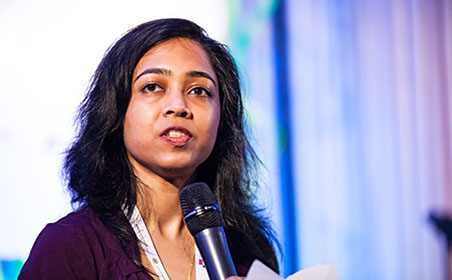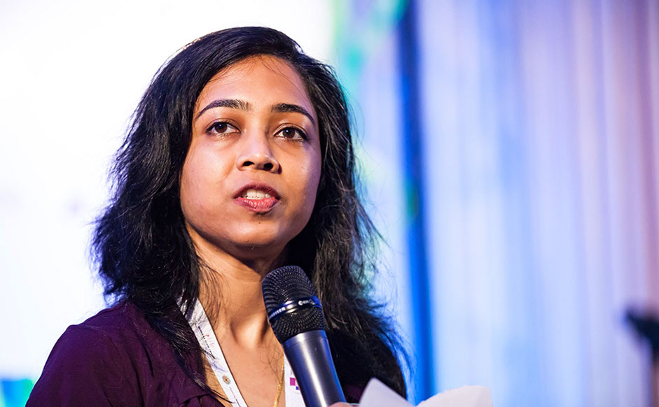 Chinmayi Arun, research director at the Center for Communication Governance and assistant professor of law at National Law University (NLU), both in Delhi, moderates a session on advancing equality in the Global South.