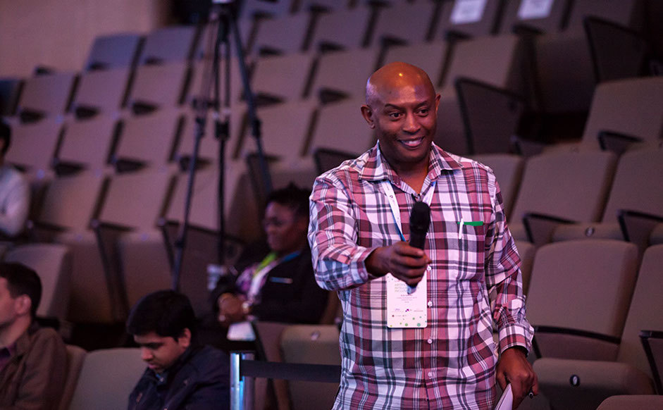 Alex Gakuru, executive director of the Content Development and IP (CODE-IP) Trust in Kenya, passes the microphone.
